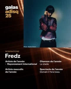 Fredz récolte quatre nominations au prochain Gala de l’ADISQ 2025 : Artiste de l’année – Rayonnement international,